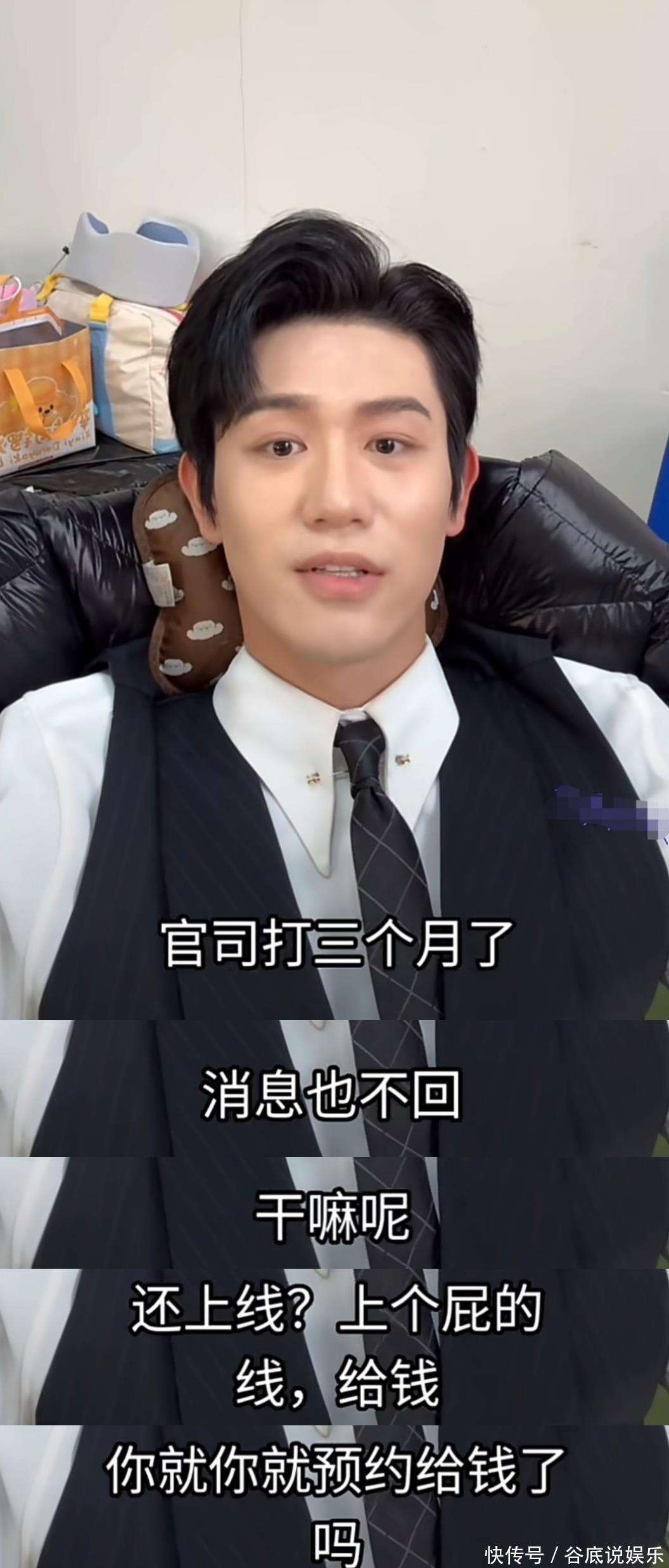 对此,他说“天啊,天啊,你(注:剧组)真是撞枪口上了,我正愁气没地出呢你就来了,给没给我不知道吗?给谁啦?疑似失去了所有的力气和手段……我服了。”