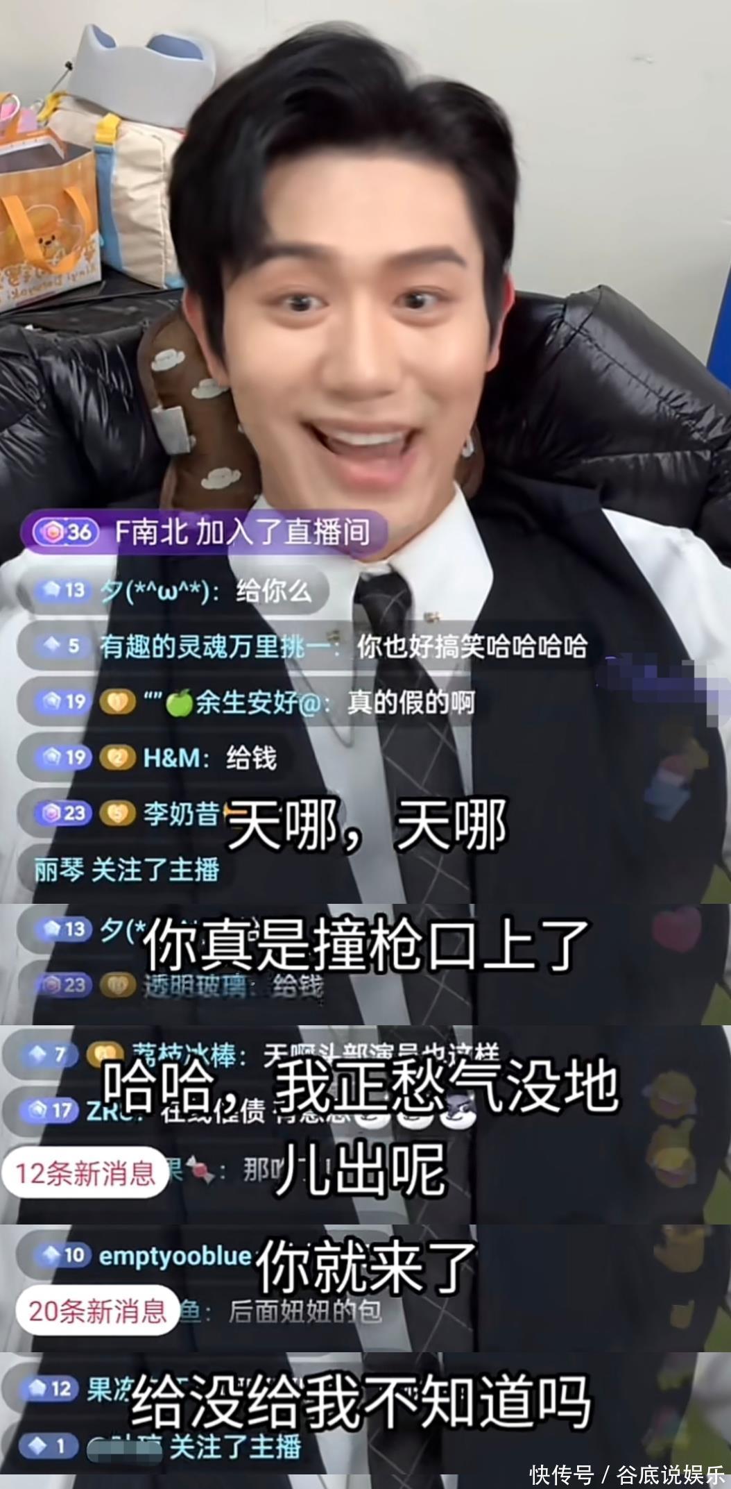 说话的时候,他都忍不住笑了。他无奈地说“人在无语的时候是真的会笑”,后面他又大笑了几次,画面莫名好笑但又很心塞。